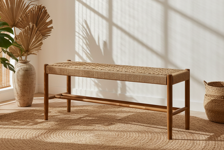 "Jag älskar kombinationen av teak å läder, det ger en lyxig men naturlig känsla. Perfekt både som extra sittplats å som en snygg detalj. En ny favorit här hemma." – Emma K.